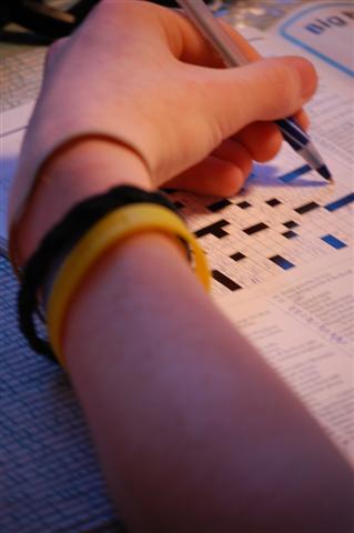 the Times crossword puzzle in ink. You’ll notice their wrists covered
