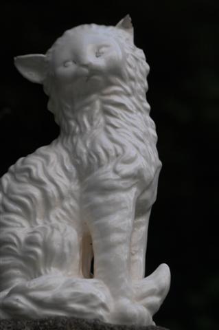 My Gram gave this kitty to me when I was twelve years old. One day, just clear out of the blue, she took me over the china cupboard in the hall and told me I could have my pick of the two. They were a matched set that she had inherited from her own grandmother years and years before. I deliberated over the porcelain pair; the other it seemed was destined to live with my cousin, but I was given first choice. One of the cats was in perfect condition, but this one was missing an ear. I couldn’t help myself, this was the one I felt I should take.