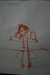 My youngest drew this portrait of me. Notice the smile, the svelte waist, the coiffed hair. And my arms. “What are those bumps on my arms?” I ask. “Those are your muscles,” he answers, looking for all the world like